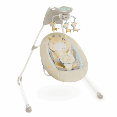 Качели «Жирафик» предназначены для детей до 9 кг. Они помогут успокоить и развлечь Вашего малыша при помощи качаний в 2-х направлениях с шестью скоростями, музыки, фотографий и видео, электронного мобайла с плюшевыми игрушками и световых эффектов.