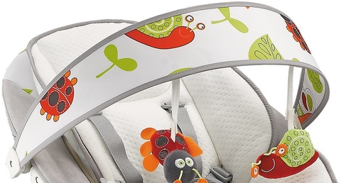 - Чтобы малышу не было скучно качели оборудованы дугой с 2 подвесками в виде животных.
