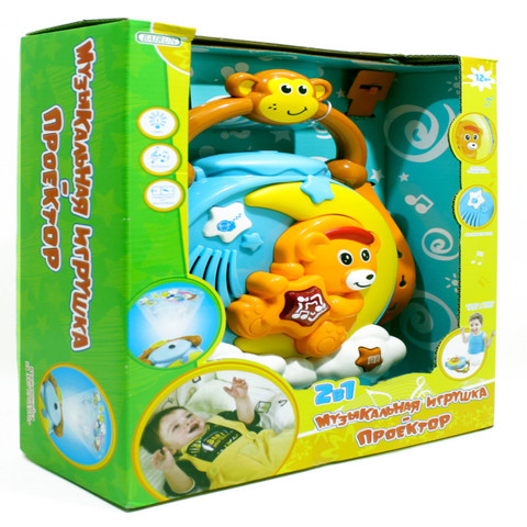 - Яркая музыкальная игрушка-проектор поможет родителям успокоить кроху пред сном. - Игрушка имеет привлекательный для детей дизайн и украшена рельефным изображением медвежонка катающегося на полумесяце в облаках.