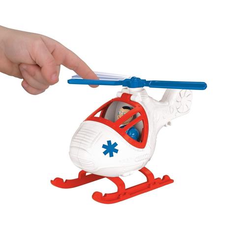 Лопасти вертолета вращаются, руки и ноги пилота сгибаются, голова поворачивается. В набор входят: спасательный вертолет, носилки, электрокардиограф, костюм пилота и фигурка пилота-спасателя.