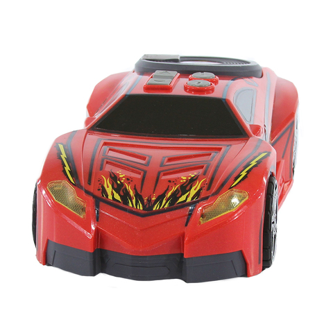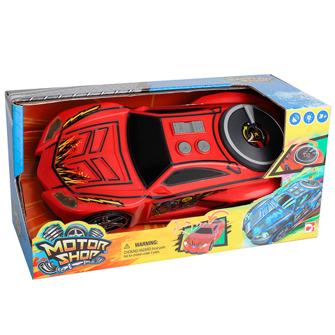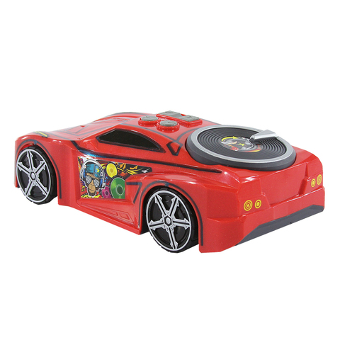 Эта гоночная машинка с яркими картинками на кузове напоминает любимый автомобиль ди-джея, так как на крыше игрушки размещен пульт и кнопки, позволяющие выбрать звучащую музыку. Таким образом поездка станет еще веселее, а мальчишки смогут развить при этом фантазию и улучшить слух.