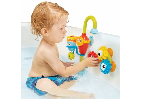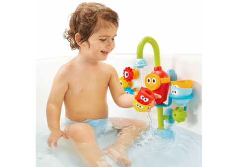 Многофункциональная игрушка для игр в воде. С помощью компрессора черпает воду непосредственно из ванной, создавая бесконечный поток без дополнительного расхода воды. Поставь формочки или направь струю на шестеренки и наблюдай за различными эффектами.
