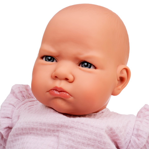 Анна - очаровательная кукла-младенец размером 52 см оздана мастерами-кукольниками испанской фабрики Мунекас Антонио Хуан. У Анны очень серьезное выражение личика и очаровательные пухлые щечки.