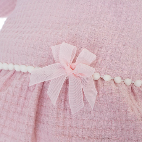 Комплект одежды, разработанный испанскими дизайнерами специально для Изабель, включает в себя платьице, нагрудник, повязку на голову и нососчки. Края одежды качественно обработаны: все детали - с внутренними швами и технологической обработкой края.
