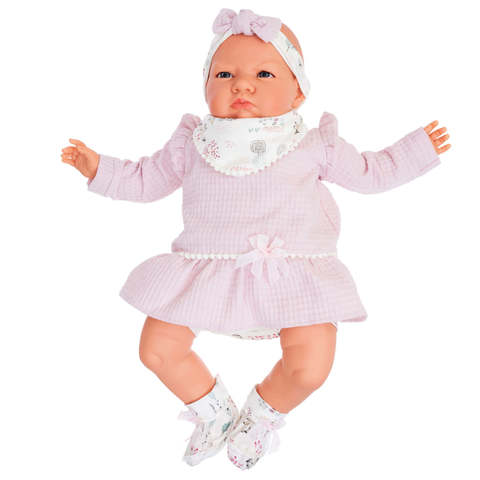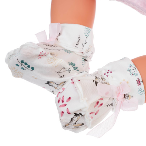 Ее голубые глазки обрамлены длинными ресничками. Кукла реалистична, с подвижными ручками и ножками. Тело куклы - мягконабивное, а ручки, ножки и голова изготовлены из высококачественного винила, бархатистого на ощупь. Такая конструкция игрушки создает невероятное ощущение настоящего малыша на руках.