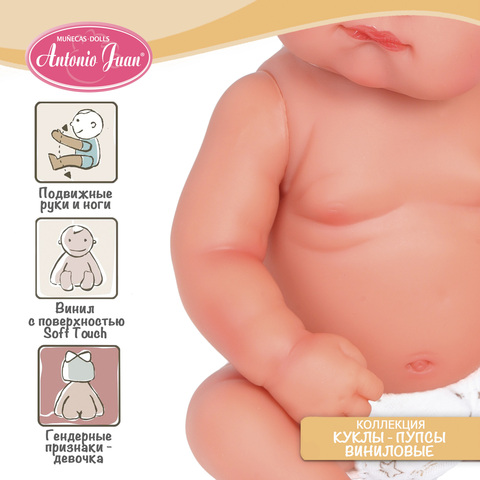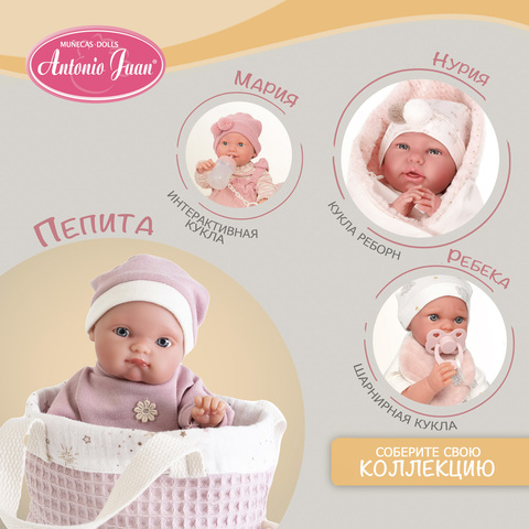 Купить виниловую куклу Пепиту - сделать прекрасный запоминающийся подарок девочке на день рождения и к празднику. Замечательная кукла, подарит ребенку важный опыт заботы, любви и ответственности. Кукла упакована в фирменную подарочную коробку с крышкой.