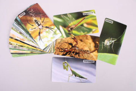 - 24 карточки для игр с малышом. Яркие реалистичные фотографии познакомят малыша с интересным миром насекомых.