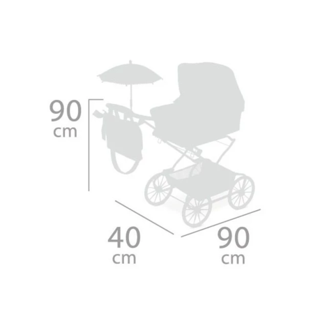 Коляска высотой 90 см. с люлькой-качалкой, складным металлическим шасси с подвеской и классическими хромированными колесами. Благодаря корзинке в нижней части девочки смогу брать с собой необходимые вещи и аксессуары для любимой игрушки.