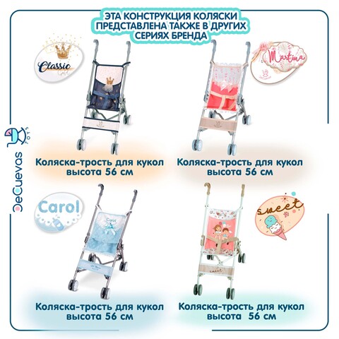 Самый узнаваемый продукт бренда DeCuevas Toys - коляски для кукол. Каждый сезон дизайнеры бренда создают новые коллекции игрушек в гармонии с последними веяниями моды и с уважением к классическим дизайнам и традициям. Коллекции колясок создаются так, чтобы можно было легко подобрать коляску под рост ребенка, учитывая высоту ручки коляски.