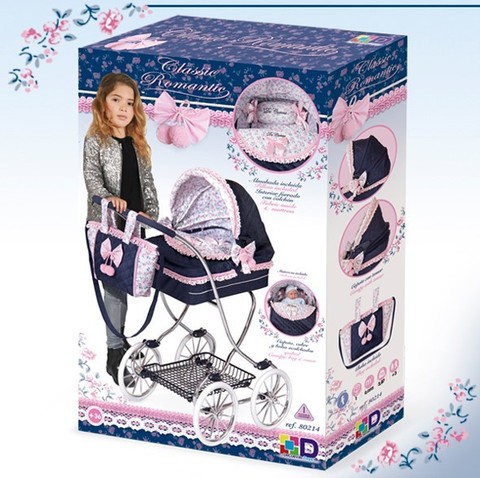 Коляска для кукол "Романтик" от испанской торговой марки Decuevas Toys станет любимой игрушкой для девочек в игре "Дочки-матери". Эту модель практически невозможно отличить от колясок для детей премиум-класса: красивая люлька, обшитая высококачественным текстилем, колеса с дисками, удобное спальное место и даже металлическая рама.