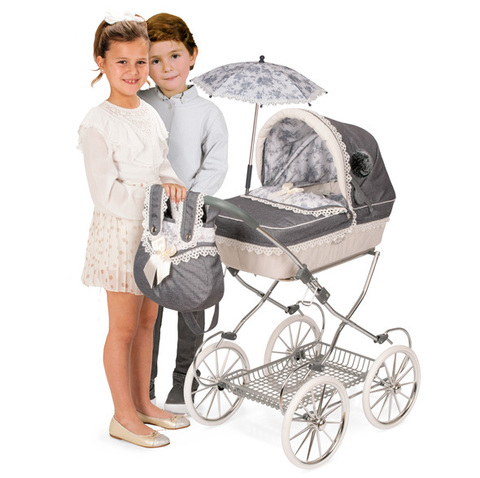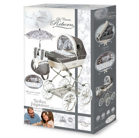 Чтобы игра в дочки матери стала более реалистичной, девочки мечтают о коляске для куклы, с которой они смогут совершать прогулки и ходить в магазин, подражая маме. Коляска с сумкой серии Реборн рассчитана на кукол размером до 42 см. Серая люлька украшена оборочками, цветами и бантиками. Ее дизайн разработан в Испании компанией DeCuevas. Эксклюзивный, элегантный и очень реалистичный дизайн!