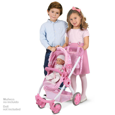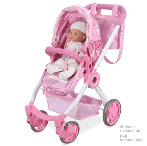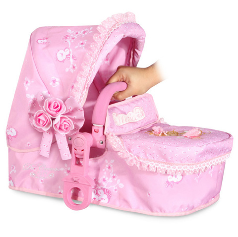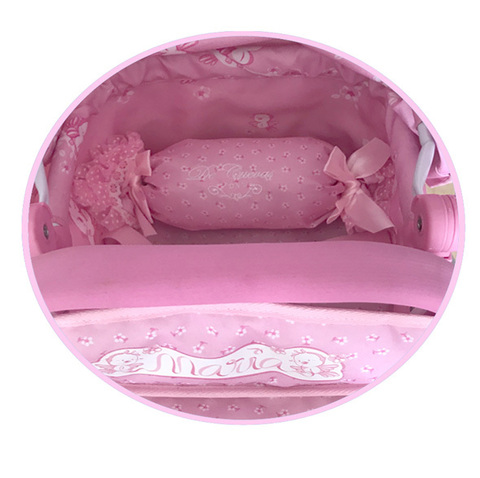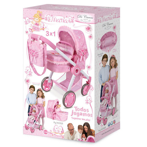 Коляска с сумкой серии Мария рассчитана на кукол размером до 42 см. Розовая люлька украшена оборочками и цветами. Ее дизайн разработан в Испании компанией DeCuevas. Стильная коляска, обладающая заметным сходством с настоящим транспортом для новорожденных.