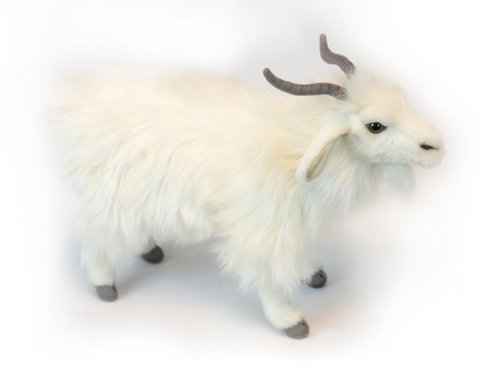 - Мягкая игрушка напоминает очаровательную козу породы «Турецкая» с рожками, коротким хвостиком и выразительными глазками, которая стоит на своих лапках с копытами.