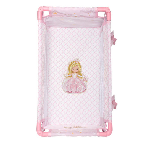 Бантики-звездочки, принт с прекрасной принцессой, коронами и лебедями делают этот манеж-кроватку для кукол еще более милым и очаровательным. Такая кроватка подойдет даже самой требовательной, маленькой "маме".