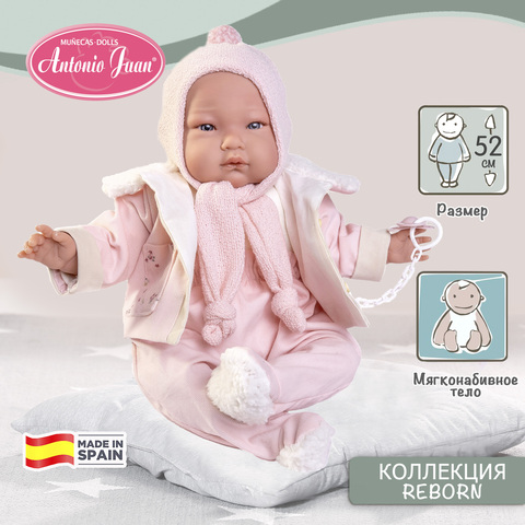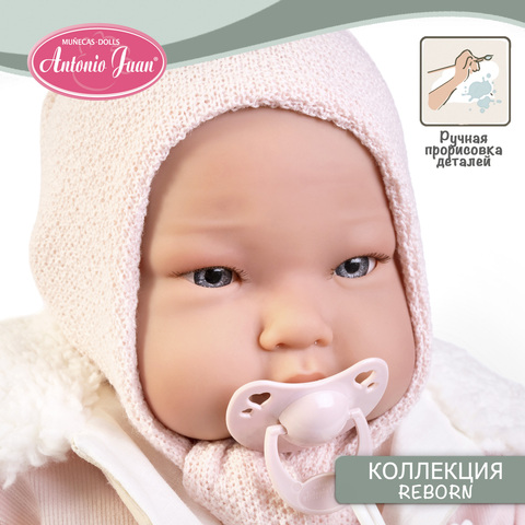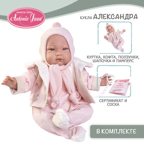 Комплектация: кукла, куртка, кофта, ползунки, шапочка, памперс, сертификат о рождении, соска.