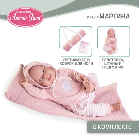 Комплектация: кукла, толстовка, штаны, подгузник, коврик для йоги, сертификат о рождении.