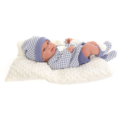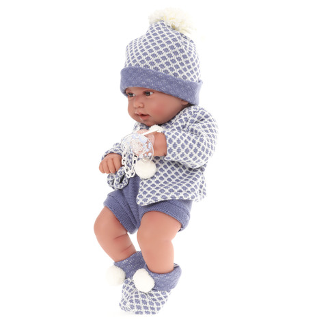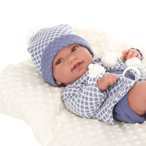 Анжело — кукла пупс испанского бренда Мунекас Доллс Антонио Хуан размером 42 см. Малыш с выразительными глазами полностью выполнен из гипоаллергенного винила высокого качества. Ручки и ножки подвижные, у куклы есть гендерные признаки (мальчик). Густые темные волосы легко расчесывать. Одет в современную одежду для малышей с застежками.