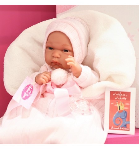 - Кукла выполнена в виде девочки-младенца, реалистичность исполнения достигнута благодаря выдержанным пропорциям, детально переданным анатомическим особенностям и многослойной росписью куклы мастерами вручную.