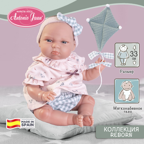 Кукла младенец Адриана с воздушным змеем - новинка серии реборн размером 33 см испанского бренда Мунекас доллс АНТОНИО ХУАН, которая выглядит как настоящий ребёнок.