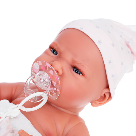 Кукла анатомически точна, с гендерными признаками, подвижными ручками и ножками, полностью изготовлена из высококачественного винила с покрытием soft touch, бархатистого на ощупь.