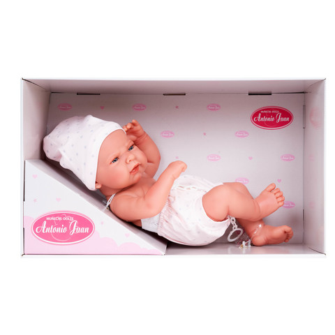 Лина- очаровательная кукла-младенец размером 42 см, создана мастерами-кукольниками испанской фабрики Мунекас Антонио Хуан. У Лины симпатичное личико, выразительные голубые глаза с длинными ресничками.