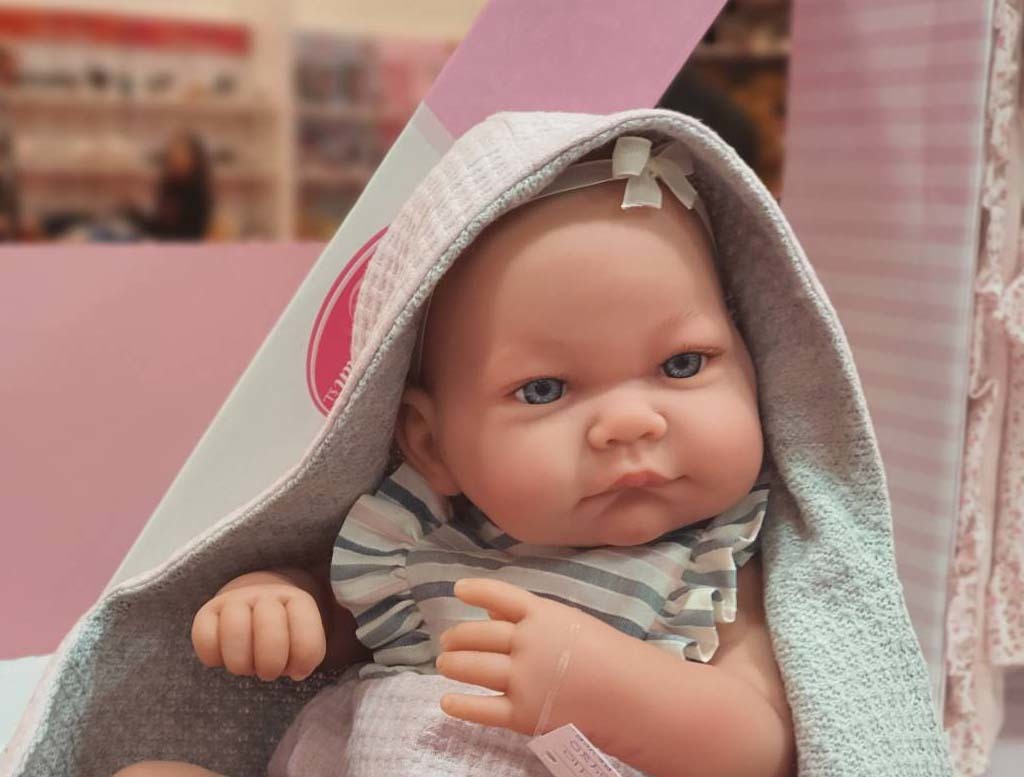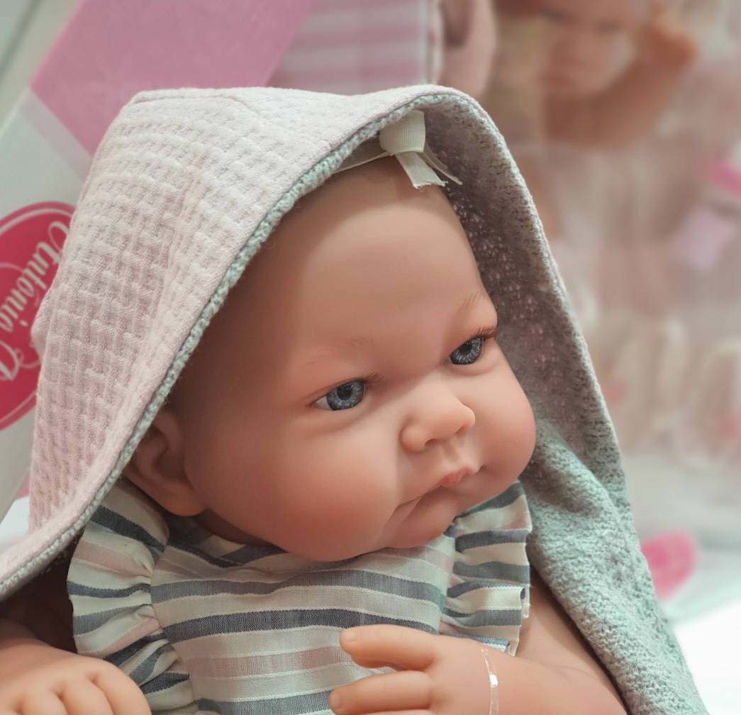 Ника- очаровательная кукла-младенец размером 42 см, создана мастерами-кукольниками испанской фабрики Мунекас Антонио Хуан. У Ники симпатичное личико, выразительные голубые глаза с длинными ресничками.