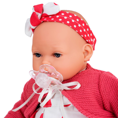 - Кукла дополнена звуковым модулем, она начнет плакать, если вынуть соску у нее изо рта.