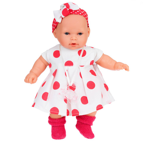 Памела - очаровательная кукла-малышка размером 27 см создана испанской кукольной фабрикой Мунекас Антонио Хуан. У Памелы трогательное личико и голубые глаза. Тело куклы - мягконабивное, а ручки, ножки и голова изготовлены из высококачественного винила. Такая конструкция игрушки создает невероятное ощущение настоящего малыша на руках.