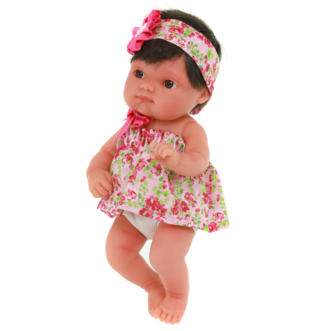 Мариша — кукла пупс испанского бренда Мунекас Доллс Антонио Хуан размером 21 см. Озорная малышка полностью выполнена из гипоаллергенного винила высокого качества. Ручки и ножки подвижные, у куклы есть гендерные признаки (девочка). Густые темные волосы можно расчесывать, куклу можно переодевать.
