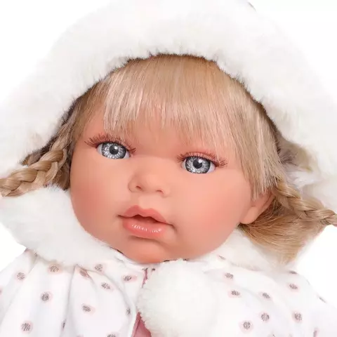 - Лицо куклы тщательно прорисовано, оно выглядит крайне реалистично, благодаря большим глазам с длинными ресницами, пухлым губкам и щечкам. Такой образ был придуман и воплощен известными европейскими дизайнерами, работающими в команде данного производителя.