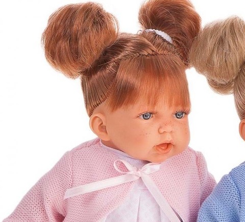 Рыжая малышка с озорными хвостиками и веснушками на лице выглядит совсем как настоящая. Она порадует свою любящую маму первыми приятными словами, которые малышка четко произнесет, если нажать на ее животик.
