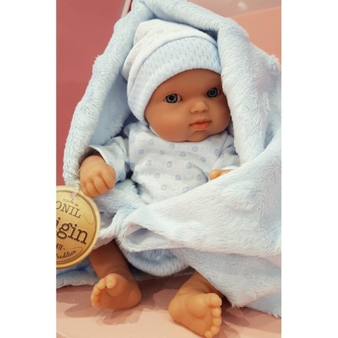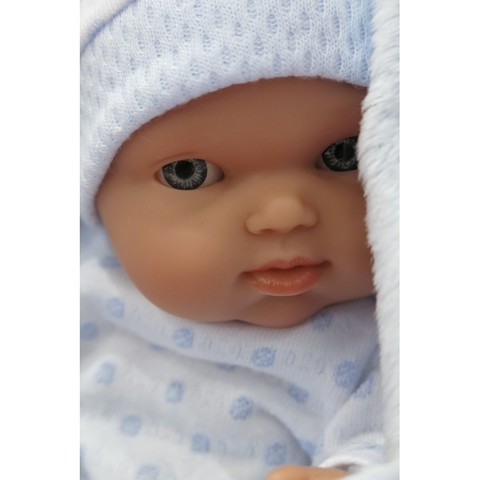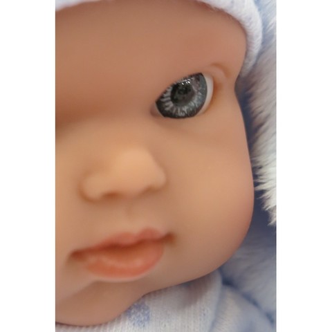 Роберто - очаровательная куколка-младенец размером 21 см, созданная испанским производителем Мунекас Антонио Хуан. У Роберто симпатичное личико, выполненное с тщательной прорисовкой деталей и выразительные голубые глазки.