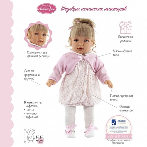 Отзывы о товаре Munecas Antonio Juan Кукла "Зои" в розовом, 55 см (1825P)