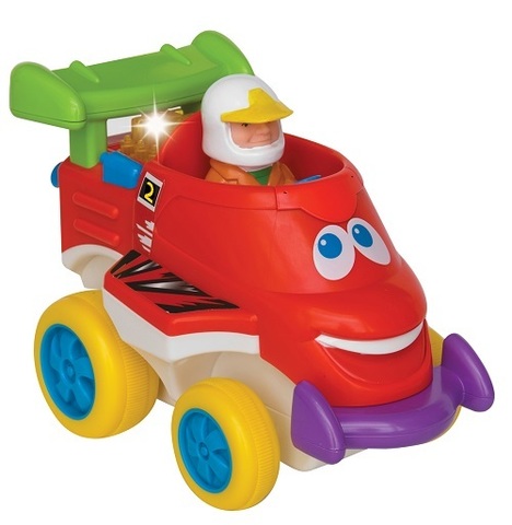 Забавный радиоуправляемый автомобильчик красочно оформлен. Во время езды у машинки мигают огоньки и звучат сигналы. Может передвигаться как с помощью пульта управления, так и самостоятельно.