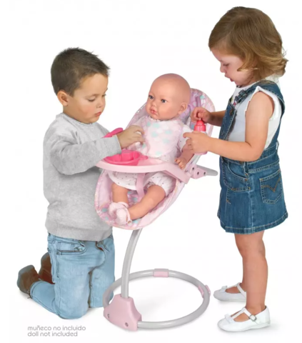 Мебель для кукол стульчик трансформер для кормления 3 в 1 с аксессуарами испанского бренда «ДэКуэвас ТОЙС» с легкостью трансформируется в зависимости от сюжета игры - это и стульчик для кормления куклы, и качели, и переноска.