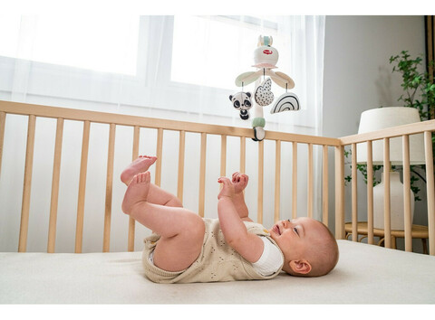 Устройство можно брать с собой в путешествия благодаря 3 типам креплений, которые подходят для кроваток, колясок, переносок и детских автокресел. Мобиль воспроизводит 5 различных приятных мелодий общей длительностью до 30 минут, кроме того, есть функция беззвучного режима.Устройство помогает развивать зрительное и звуковое восприятие ребенка с первых дней жизни.