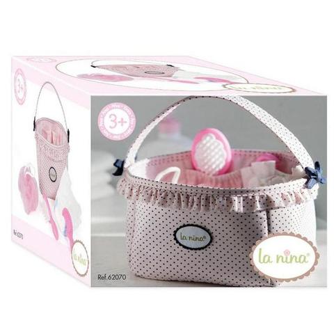 Внутри есть кармашки для аксессуаров. В комплект входит мочалка, щетка, расческа, подгузник.