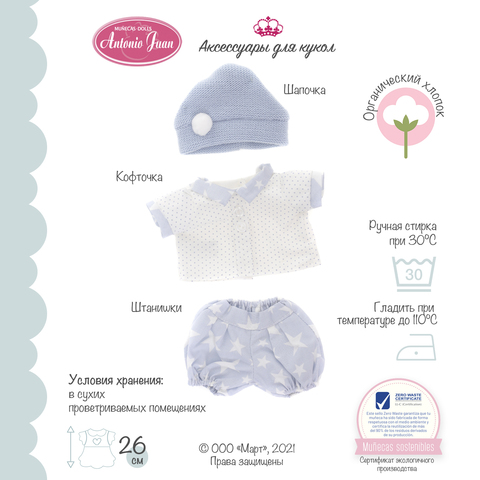 Комплект одежды для кукол выполнен из натуральных материалов по эскизам испанских дизайнеров бренда Мунекас доллс АНТОНИО ХУАН.