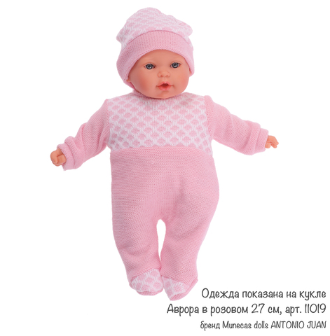 В комплекте: вязаный конверт с подкладкой из флиса, вязаный комбинезон с узором и шапка.