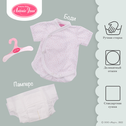 Комплект одежды для кукол выполнен из натуральных материалов по эскизам испанских дизайнеров бренда Munecas Antonio Juan.