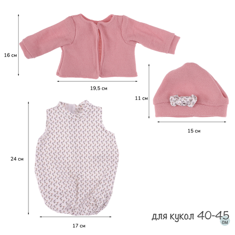 В коллекции одежды этого бренда - нарядные платья, кофты, куртки, штанишки и боди для кукол. Наборы одежды подходят и для других кукол, пупсов и реборнов размером 40 - 45 см.