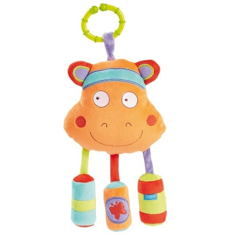 Озорной и улыбчивый бегемотик предназначен для использования в качестве подвески-погремушки в коляску, кроватку или машину.