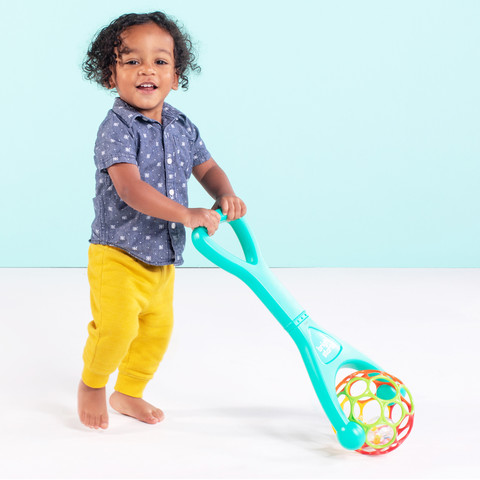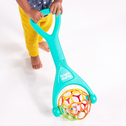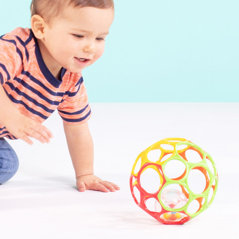 Игрушка растет вместе с вашим малышом. Съемный дизайн позволяет снять мяч и играть с ним сидя, увлекаясь шариком погремушкой внутри.