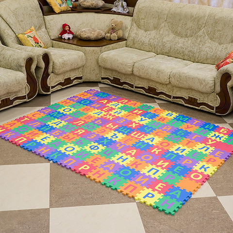 Развивайся с комфортом! Это действительно увлекает. Во время игры изучайте буквы, составляйте слова и используйте плиты как конструктор. Смягчает удары при падении и поглащает шум. Конфигурацию настила меняйте в зависимости от геометрии комнаты.