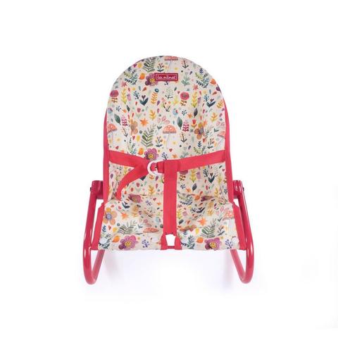 Шезлонг для куклы из серии "Валерия" с цветным акварельным узором и ярко-красной окантовкой. Подходит для кукол до 42 см. Оборудован ремнем.