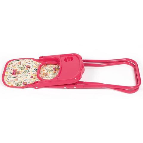 Высокий стул от испанского бренда для кукол ростом до 52 см. Высота стула составляет 61 см. Стул имеет металлический профиль, пластиковый столик, текстильные спинку и сиденье.