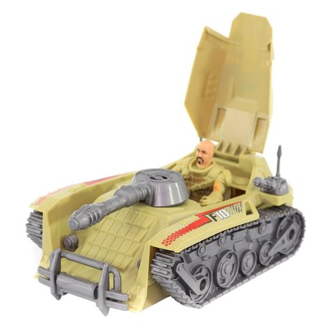 Кабина открывается, пушка и пулемет поворачиваются. Танкисту можно надеть шлем и дать в руку оружие. Игрушку легко катать по полу.