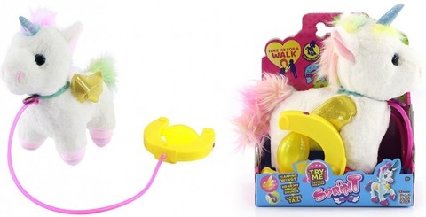 Единорог Спринт – современная интерактивная игрушка, милая и забавная. Ух ты: какая у него мягкая белоснежная шёрстка! Золотые крылышки и рог, переливающийся всеми цветами радуги, блестят, словно на солнце. От такой игрушки любой ребёнок придёт в восторг. Открывайте коробку и сразу начинайте играть, ведь батарейки уже входят в комплект.