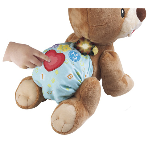 Другие кнопки на штанишках обучат малыша различным формам и цветам. Веселый медвежонок "знает" более пятидесяти песен, мелодий, звуков и фраз.