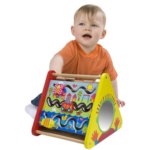 Развивающий деревянный центр "Призма" - увлекательная игрушка для малышей. На разных гранях расположены интересные игры: зеркало, зигзаги, крутящиеся кубики. С помощью таких нехитрых игр хорошо развиваются память, пространственное мышление, мышечная моторика.
